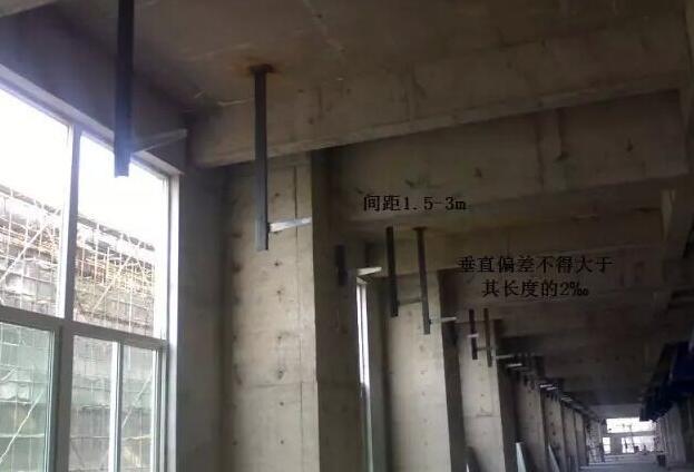 刷完兩次鐵紅防銹漆防銹漆(長條形空洞容易找正確位置并可避開墻體中的鋼筋等物體)