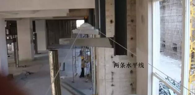2、兩端托臂焊接完后,在兩端托臂上拉兩條水平線,用于確定中間托臂高度,拉線要拉緊防止中間下垂。