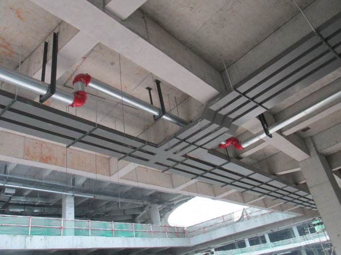 4.在有防火要求的區域內,應在電纜梯架、托盤內加入具有耐火或難燃性能的板、網等材料構成封閉或半封閉結構,并采取在橋架和支撐表面噴涂防火涂料等措施。整體耐火性能應符合國家有關規范或標準的要求。鋁合金電纜橋架不應使用在抗火性能要求高的地方。
