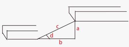 根據(jù)現(xiàn)場(chǎng)量出a和b的尺寸算出角度d,再算出下料尺寸