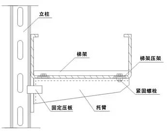 三、電纜橋架直線段安裝示意圖(以梯級式橋架為例,槽式、托盤式可以參照)