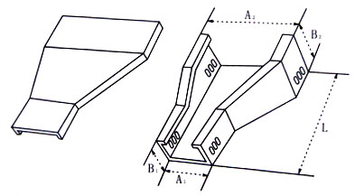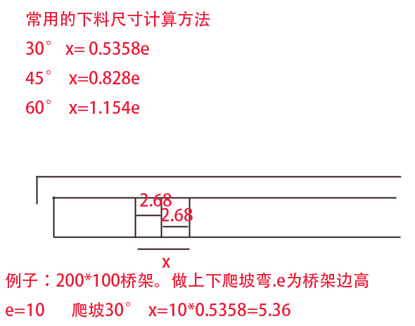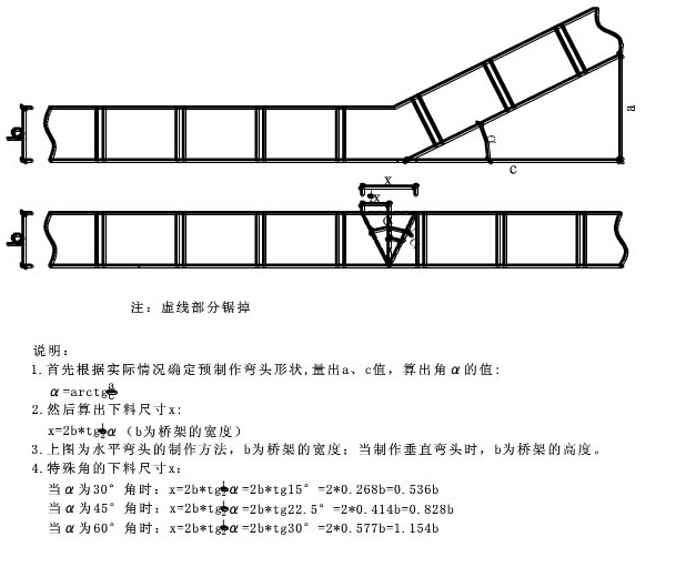 3. 上圖為水平彎頭的制作方法,b位橋架寬度;當制作垂直彎頭時,b位橋架的高度;