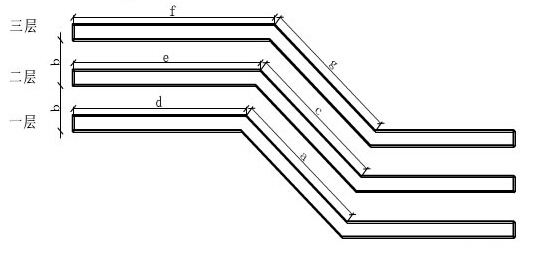 第一層兩個彎頭的做法同“一”中彎頭的做法,兩個彎頭間距a值由現場確定,但需滿足電纜彎曲半徑的要求。